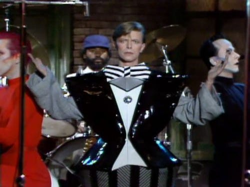 David Bowie – “The Man Who Sold the World” (1979): SNL closed out the ‘70s with a true WTF musical moment, an almost operatic version of “The Man Who Sold the World” with performance artists Klaus Nomi and Joey Arias (and introduced by none other than Martin Sheen). Bowie was dressed in an oversized plastic tuxedo, while Nomi and Arias, appearing to be monochromatic mime robots, carried Bowie to the microphone. Bowie came back for two more songs. He changed into a skirt for his classic “TVC15” and then had his head superimposed onto a marionette for “Boys Keep Swinging,” the latter of which ended with marionette-Bowie pulling out his little puppet-wiener.